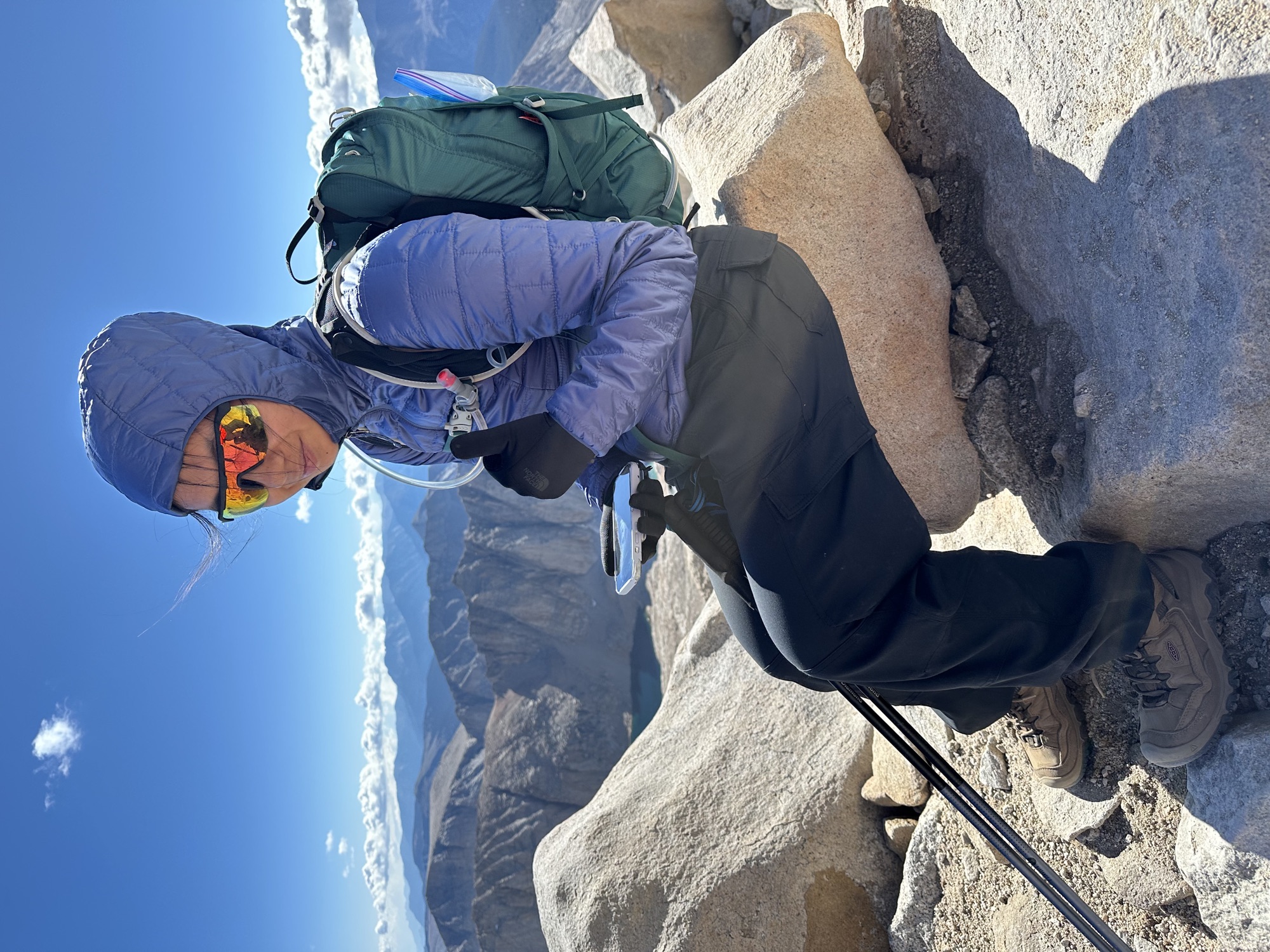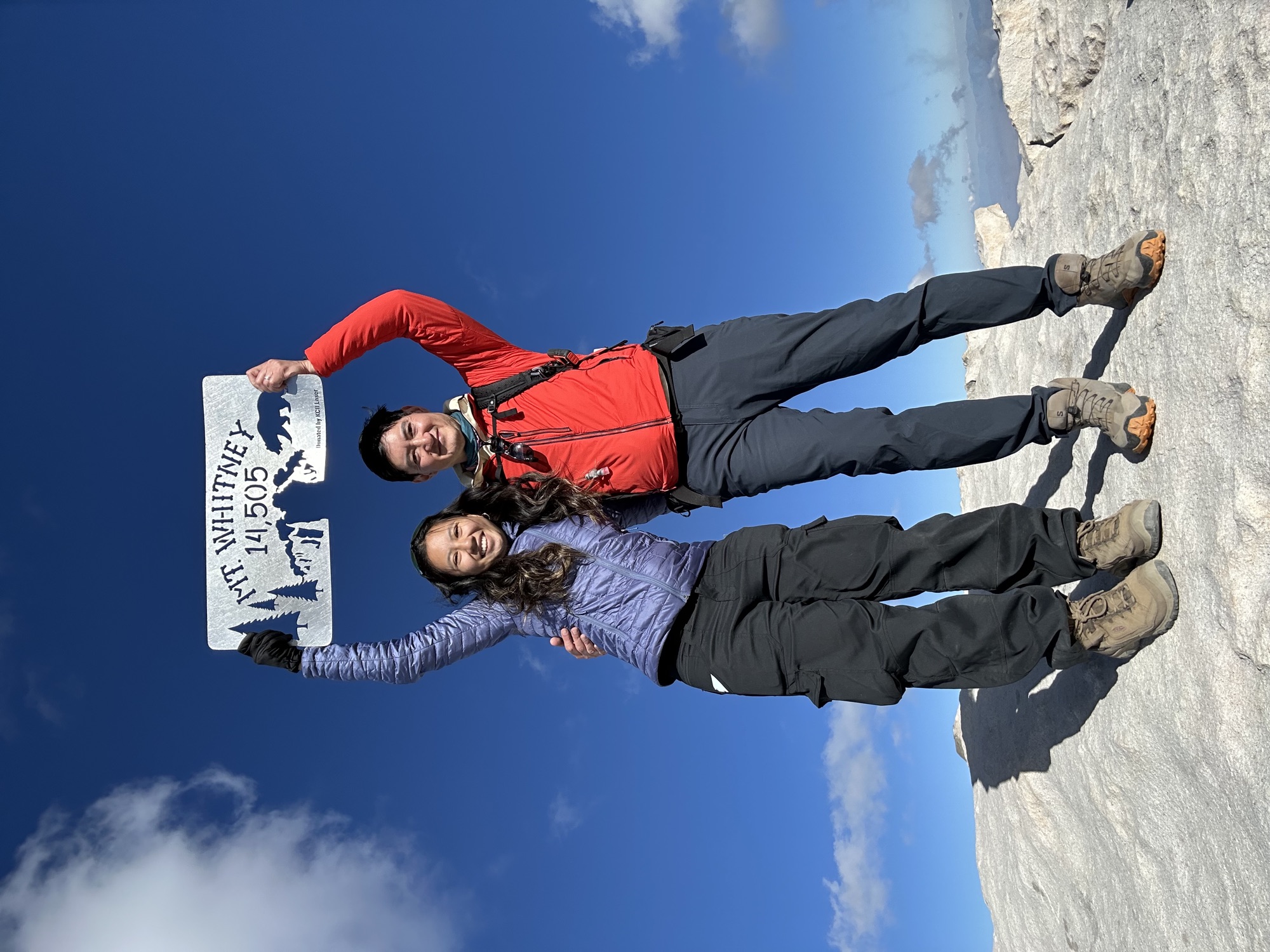 Whitney summits her namesake. It's a moment of intense emotion, exhilaration and exhaustion. She gives me the best hug I can remember.