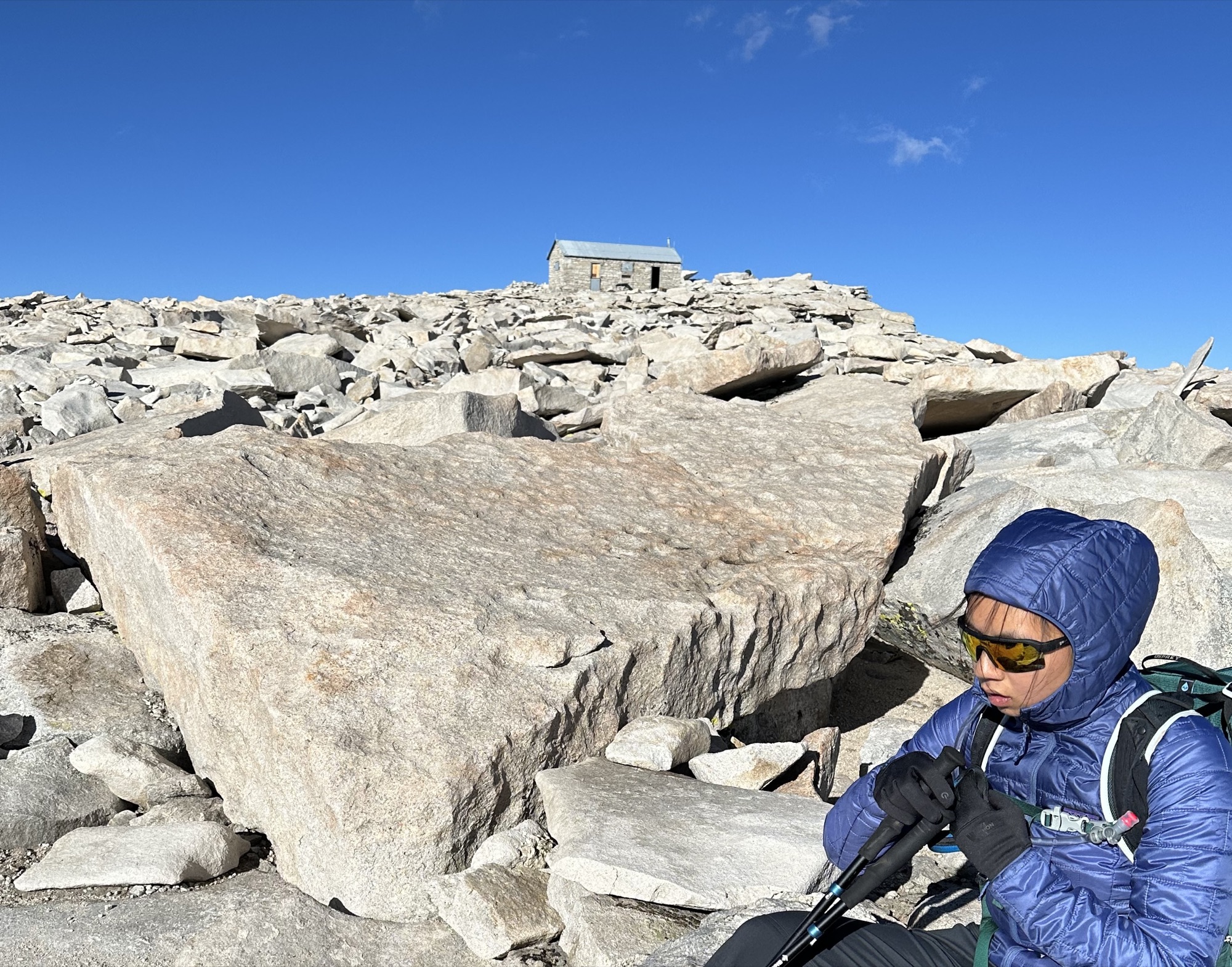 We see the hut. Officially known as the Smithsonian Institution Shelter, it represents the top of Mount Whitney. The finish line is now within view.